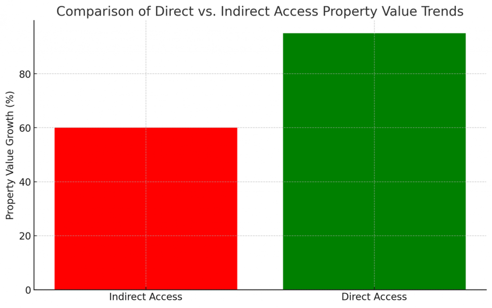 - The four areas, Direct Access had the highest increase in property value at 95%.