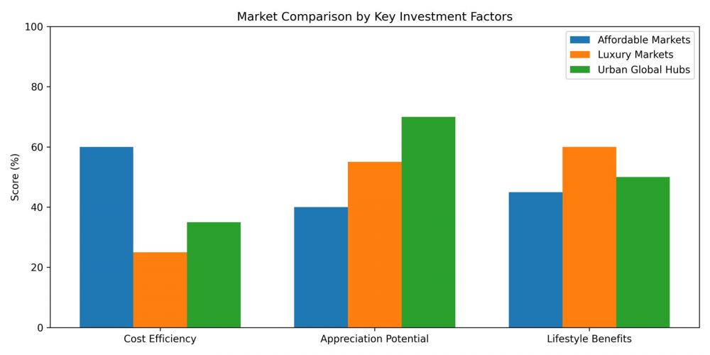 - Luxury markets have a good mix of appreciation and lifestyle but require a higher cost of entry.