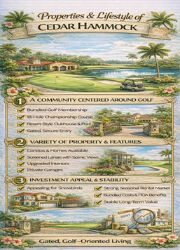 Investors have begun to find Naples given its temperate climate and stable prices. Homes in golf communities are especially appealing as they combine relaxation with leisure and recreation. Cedar Hammock consists of mature landscaping with existing upkeep. People care about privacy and socializing.