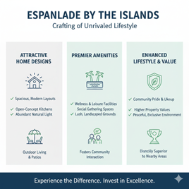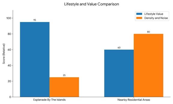 - The Esplanade by the Islands offers a much greater lifestyle value (Score: 95) as compared to other nearby places (Score: 60) due to its holistic design for residents.