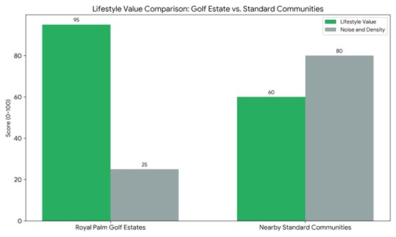 - Royal Palm Golf Estates has a much higher lifestyle score since it is enriched with world-class golf facilities, better green spaces and luxurious community features.