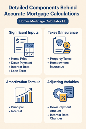 Planning a mortgage is not just about different payments estimations. Buyers need to think of taxes, insurance, interest rates, and the type of the house. A Homes mortgage calculator FL is a tool that deals with all these details and gives the users results that are both quick and accurate. It allows buyers to identify terms of the loans and different financial situations. The decision-making process in such a situation becomes quite simple and well-organized.